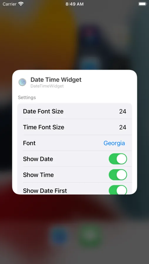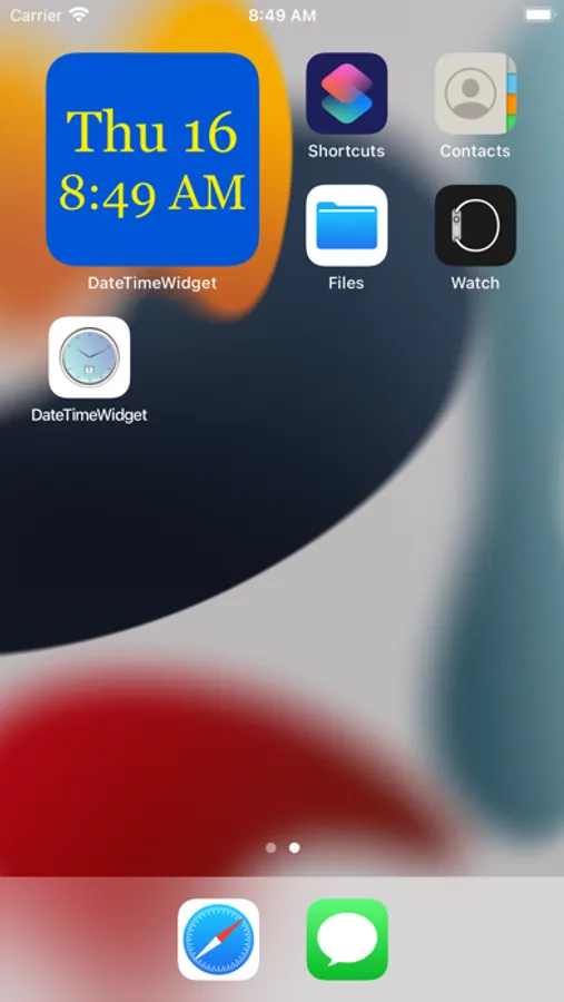 The DateTimeWidget displays date and time in a widget that can be added to your home screen on your iOS device. It is a useful widget if you want to see the date and time in larger text on your screen. The color, size of text and font can all be adjusted in the settings for the widget.