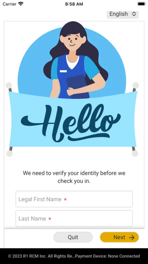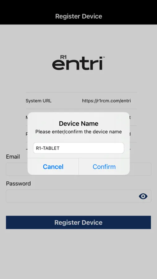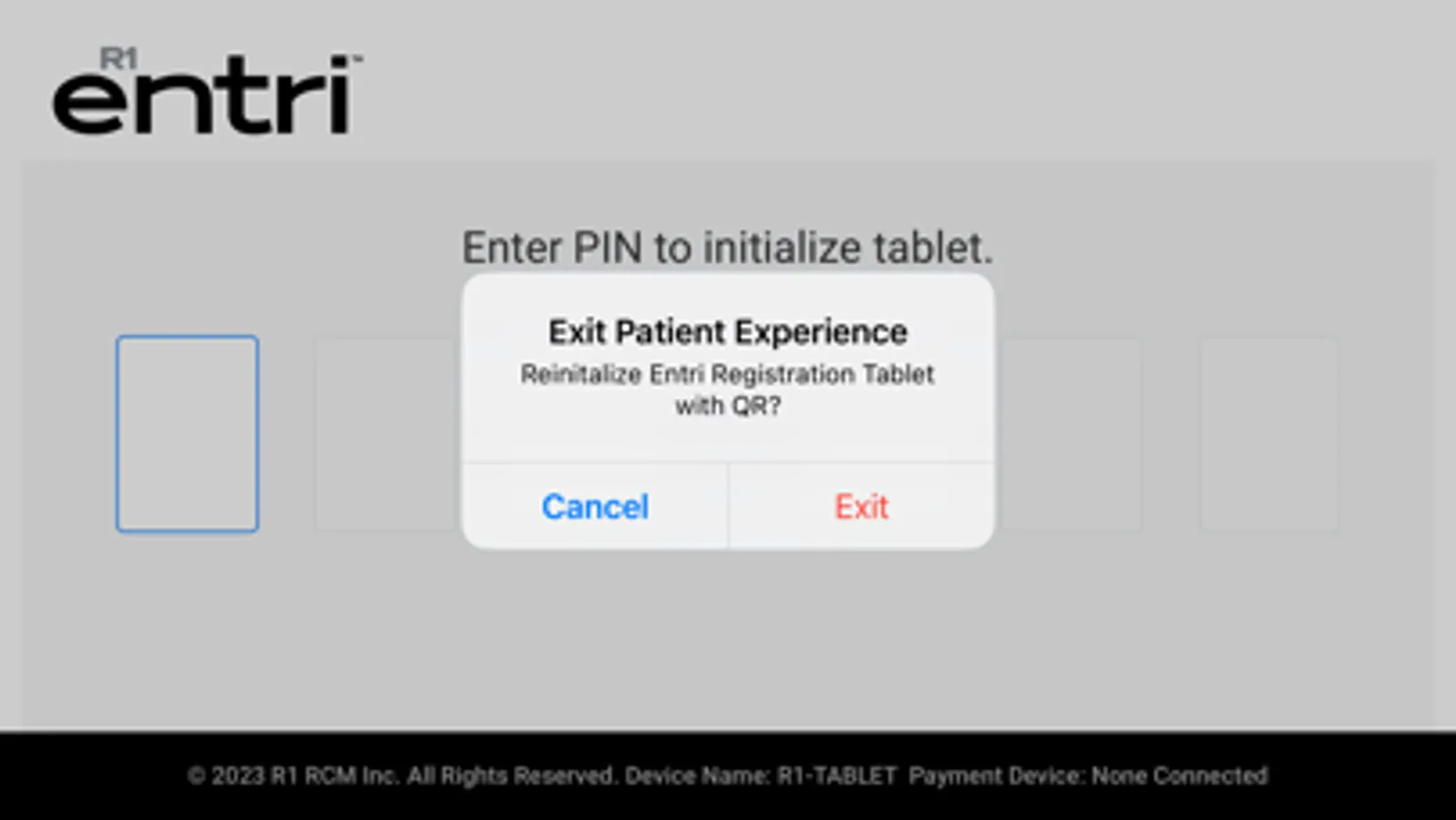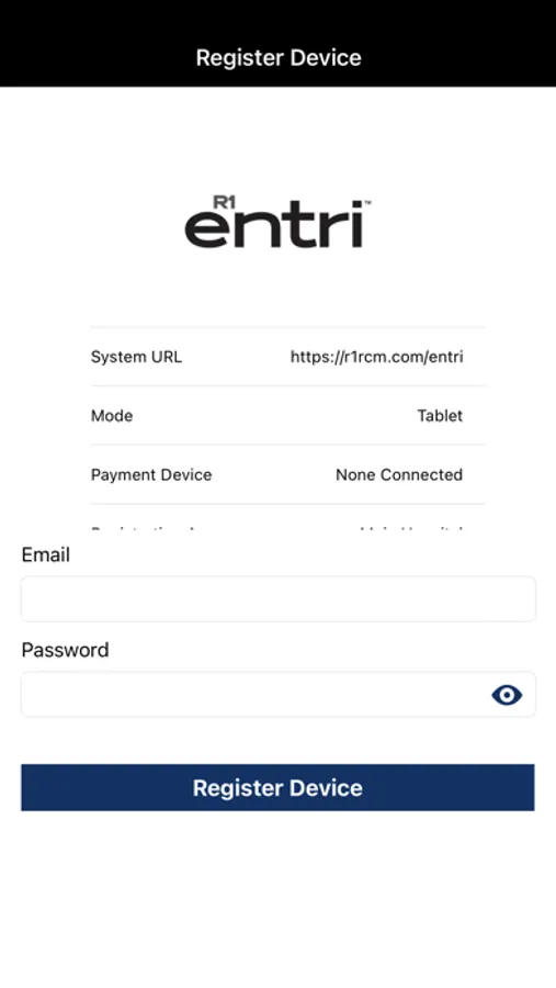 R1 Entri Registration Tablet supports patient arrival and check-in on the date of service. The app supports kiosk and handheld tablets.
