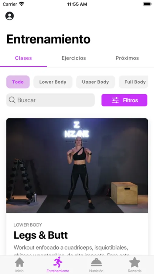 - Lista de ejercicios con videos demostrativos.