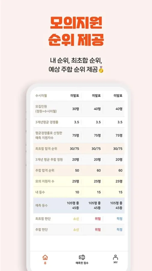 -내 순위, 최초합 순위, 예상 추합 순위 제공