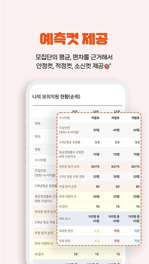 -모집단의 평균, 편차를 근거해서, 안정컷, 적정컷, 소신컷 제공