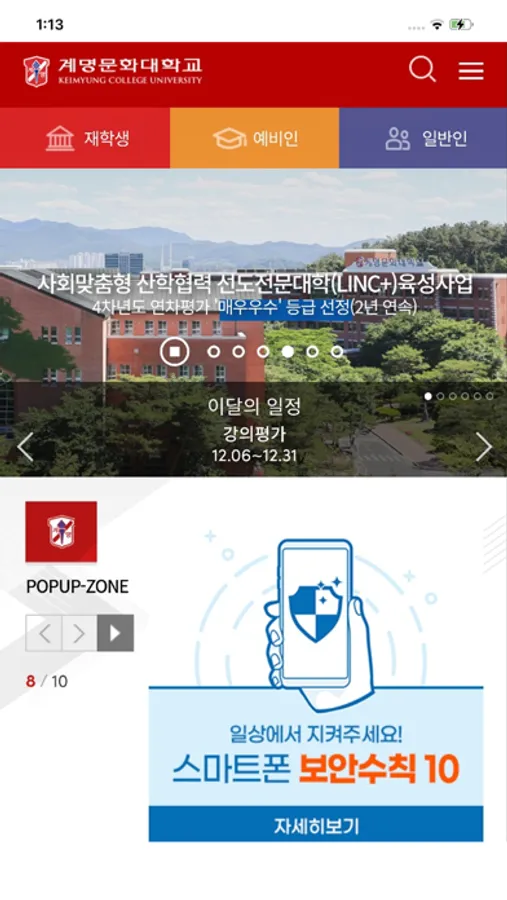 계명문화대학교 학생들의 보다 즐거운 학교 생활을 위하여 아래와 같은 기능을 제공하고 있습니다.