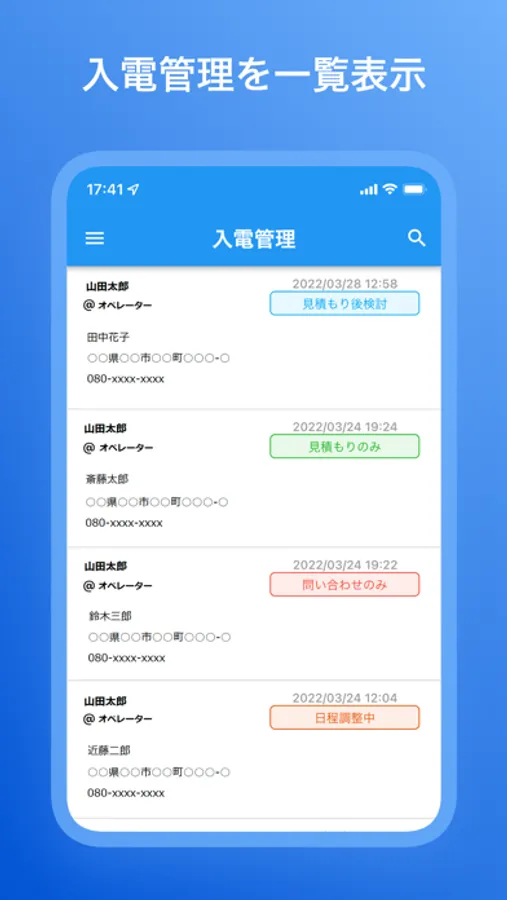 外出先でも9linesのコールセンター入電管理システムを利用できるアプリです。