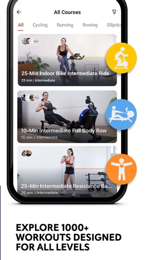 •Discover over 1,000 free on-demand workout video courses crafted by certified trainers, tailored for various exercise equipment such as indoor bikes, treadmills, rowers, ellipticals, dumbbells, bodyweight, and even resistance band exercises.