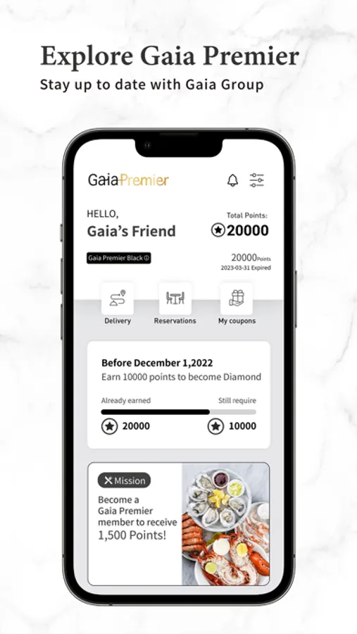 Sign up as Gaia Premier member to enjoy exclusive dining privileges and rewards! Through Gaia Premier APP, you may track and redeem your reward points anytime and anywhere. You can be the first to discover all latest updates and promotions under Gaia Group! Important Guideline while using Gaia Premier App: Gaia Premier Membership Account and Points are non-transferrable. Verification of the member's identity including a credit card might be required when using all membership privileges.
