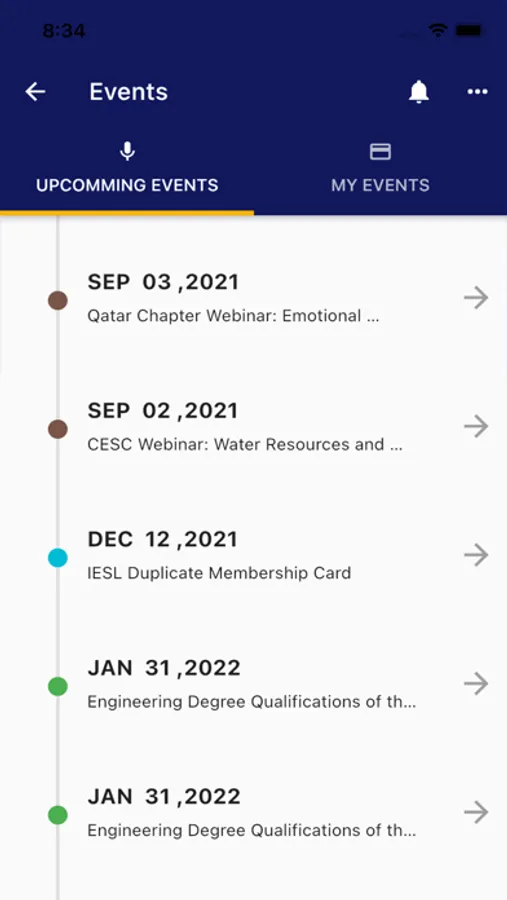 Members can register for the upcoming events and the CPD courses which are conducted in the IESL via the mobile application. Notifications will be sent when they are registered for those events or courses via the app.