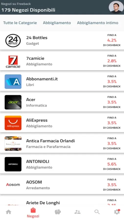 Freeback è un marketplace con cashback intelligente. Puoi acquistare nei negozi convenzionati, ottenendo alte percentuali di cashback sul tuo conto corrente!
