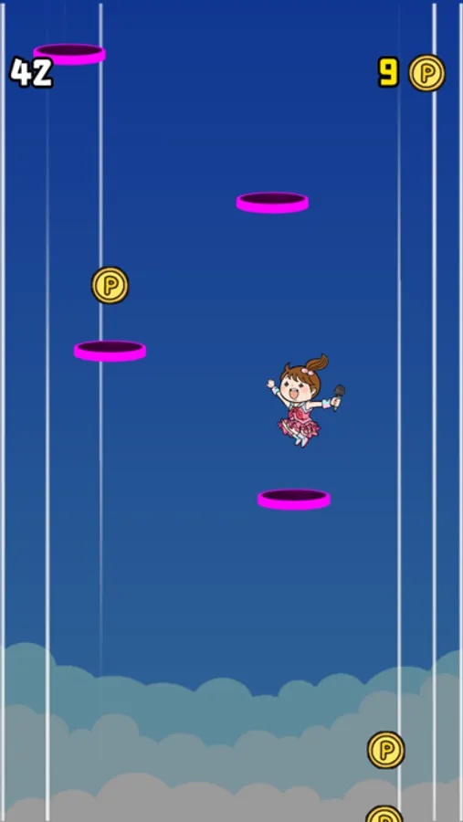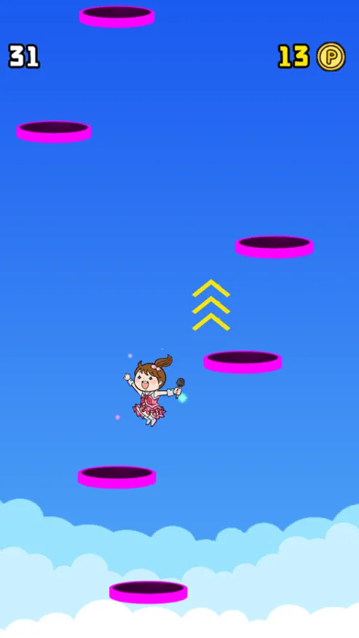 Manipulate a baby doll, keep going up, jump on different discs in succession