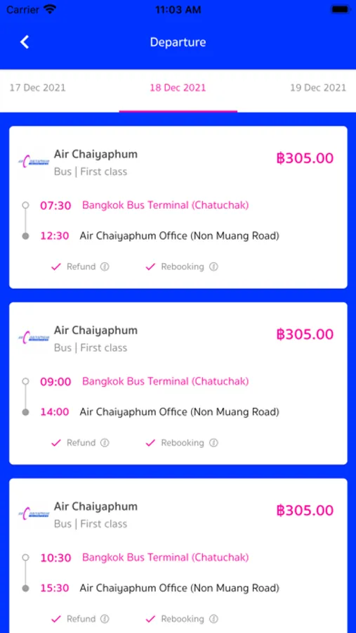 Air Chaiyaphum searches hundreds of ground travel options to find you the best travel deals throughout Thailand. Compare by price, transportation provider, departure time and more to discover the travel options that best fit your needs and budget. We continue to enhance features and add more trips, routes, transportation providers and countries served. Feedback is always appreciated and we hope you have a great journey with us.