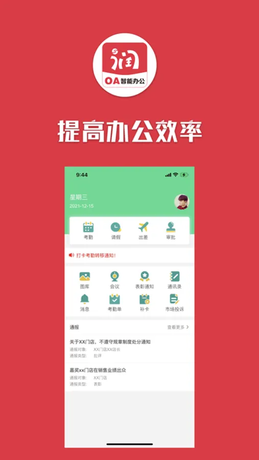 让各类企业提高办公效率,在线考勤打卡,在线审批等等