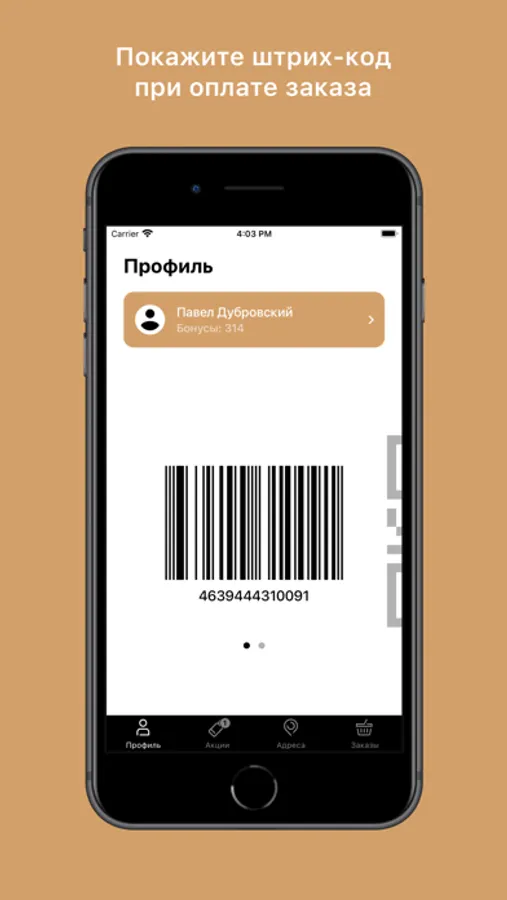 Скачайте приложение, получите свой уникальный QR-код и покажите его на кассе.