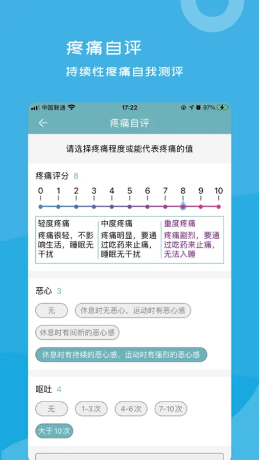 智能镇痛助手APP协助您记录疼痛情况,科学管理急慢性疼痛。