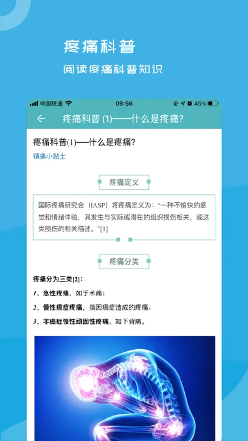 用户可查阅疼痛知识,了解自控镇痛的概念和应用场景;
