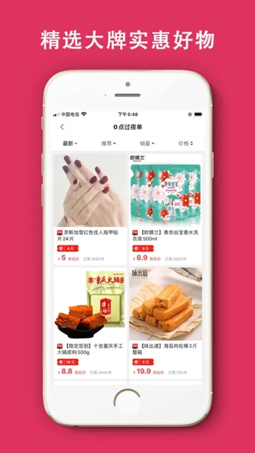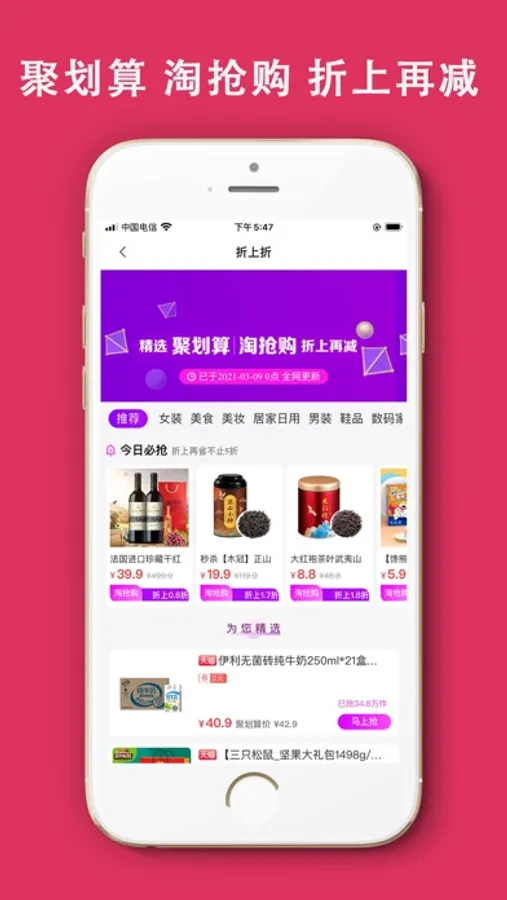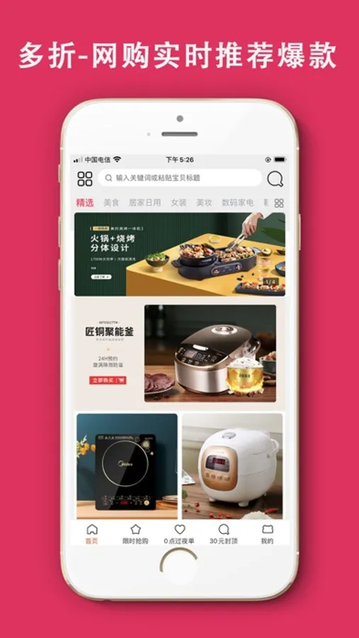 每天更新上千种商品,低至1折起再包邮。精选商品均经过人工审核,安心,放心,值得信赖。女装、美妆、母婴、男装、数码、美食、配饰、箱包、鞋品等品类齐全。