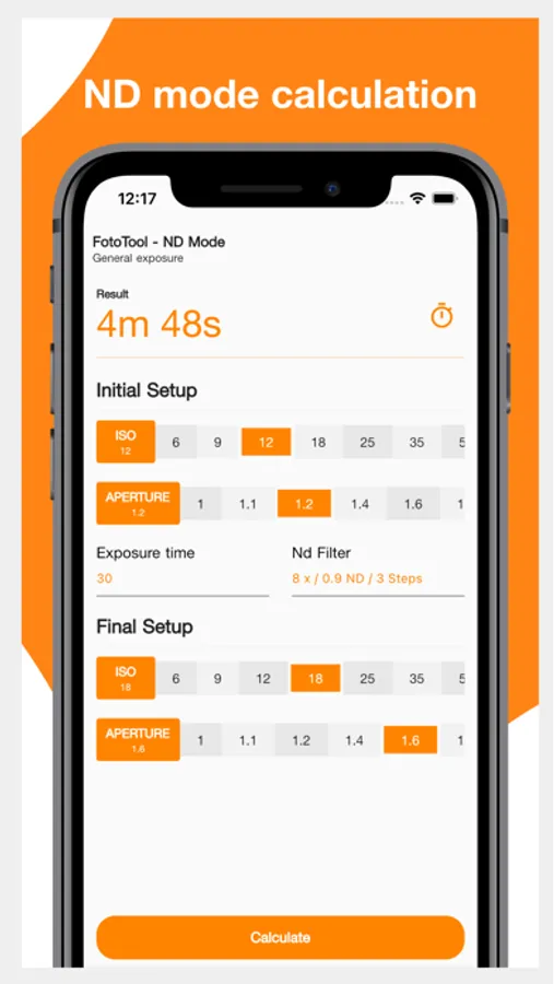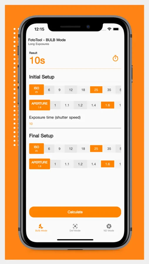 Photo tool calculation app contains main 3 features of photography bulb mode, Dof mode, ND mode calculations