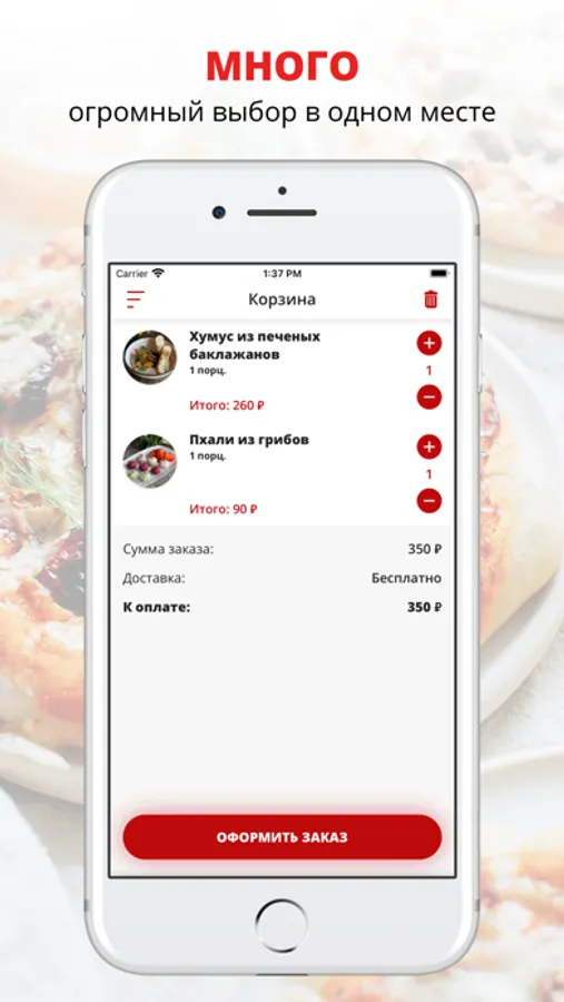 Скачивайте наше приложение, оформляйте заказ и наслаждайтесь любимой едой, где бы Вы ни были! Приятного аппетита!