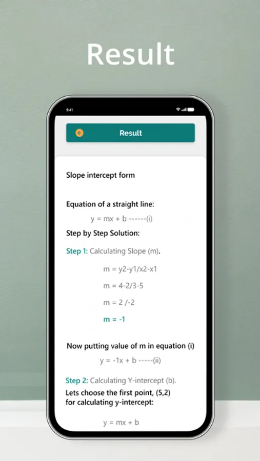 It includes the labeled calculation classified into steps. You will also get a linear equation graph of the formed equation.