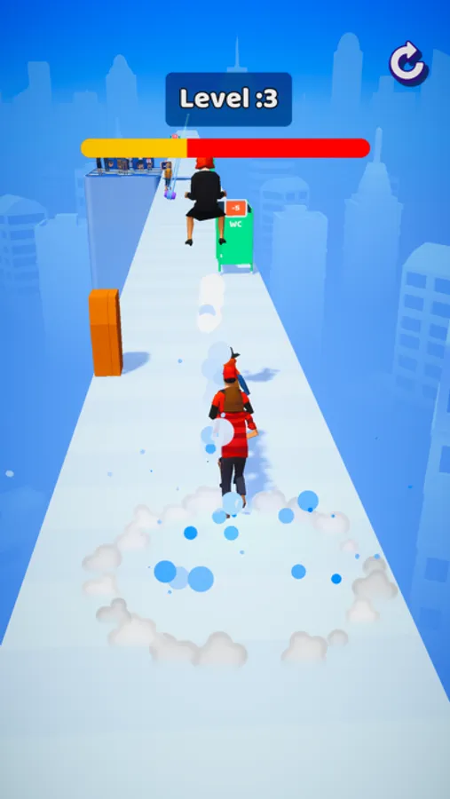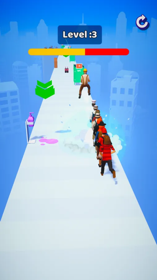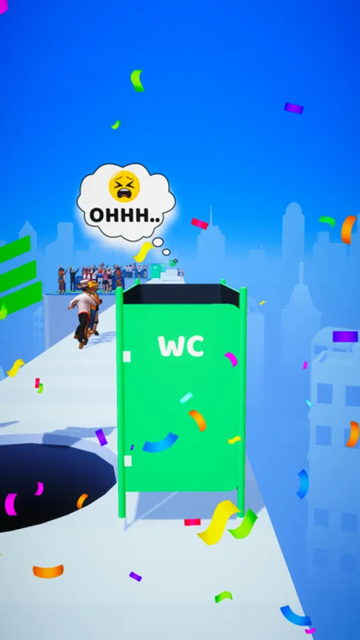 Everyone is getting ahead of you and the queue is getting longer and longer. Get rid of them all and reach bathroom !