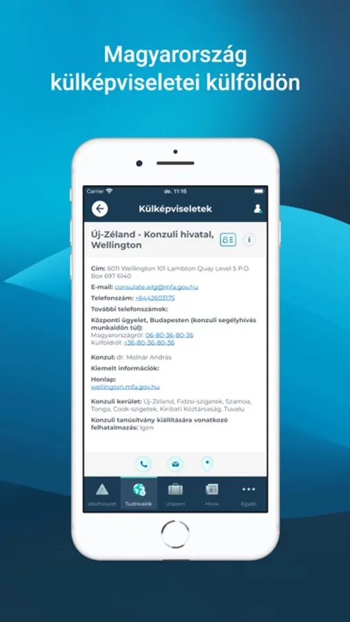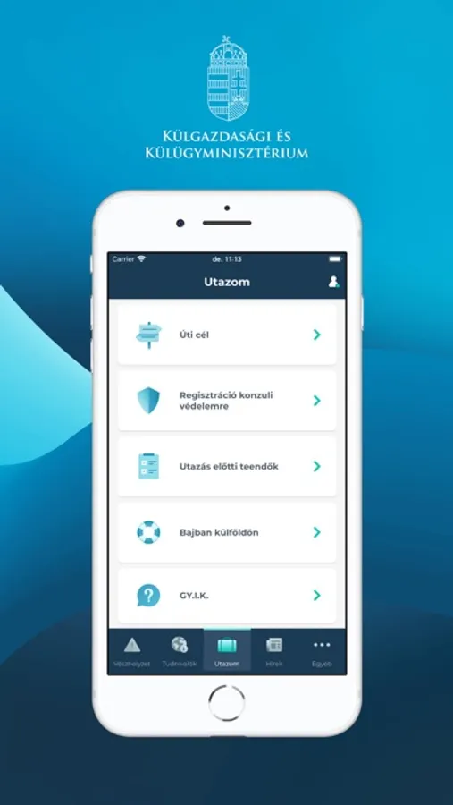 A Konzuli Szolgálat Konzinfo Utazom mobil alkalmazása a magyar állampolgárok biztonságos és felelős külföldi utazását és tartózkodását segíti utazási és konzuli információkkal. Az alkalmazásban egyszerűen hozzáférhetők a naprakész utazási tanácsok a célországra vonatkozóan, a magyar külképviseletek elérhetőségei, valamint a Konzuli Szolgálat kiemelt hírei. Hasznos tudnivalók olvashatók a konzuli segítségnyújtásról, továbbá arról, hogy mi a teendő, ha a felhasználó külföldön bajba kerül. A mobil alkalmazásból a felhasználó közvetlenül tud konzuli védelemre regisztrálni és mobil eszközén vészhelyzeti értesítést tud fogadni, ha az adott országban válsághelyzetet hirdetett ki a Konzuli Szolgálat.
