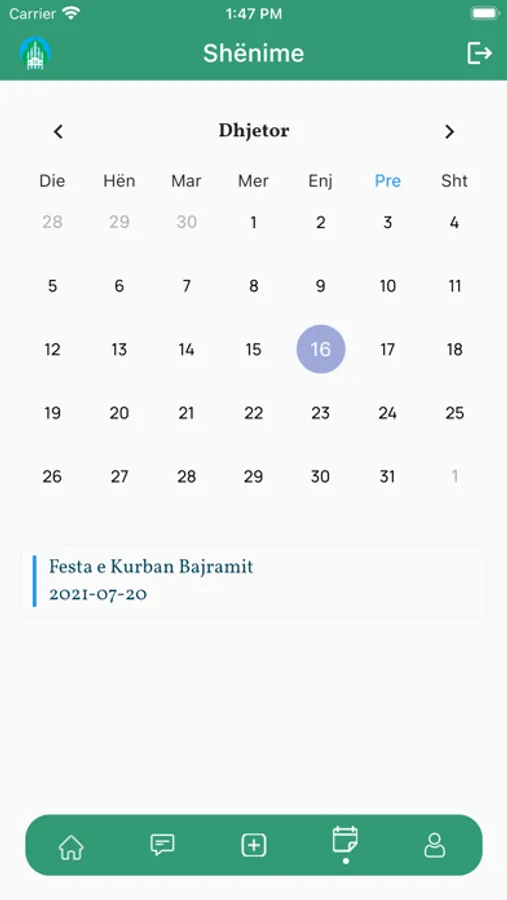 5.Kalendarin ku ju mund të shikoni datat e rëndësishme të kalendarit Islam.