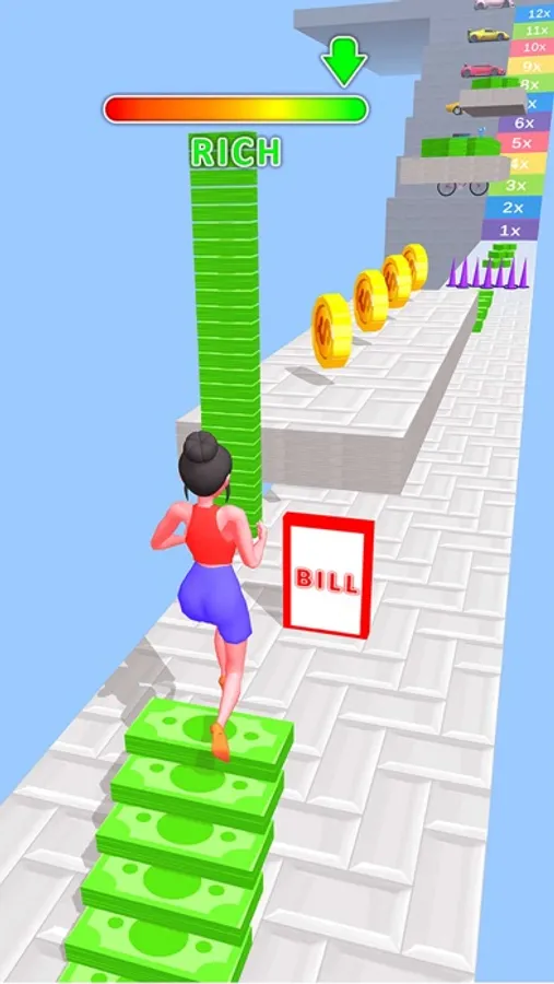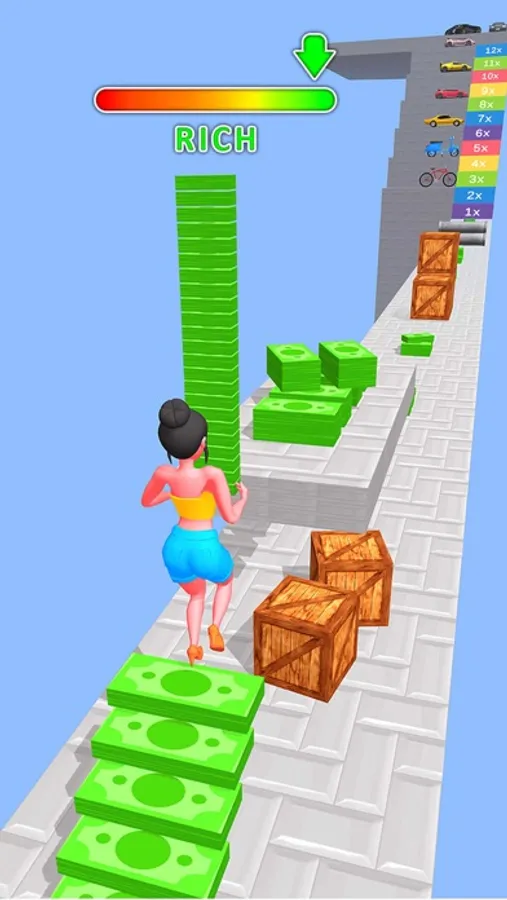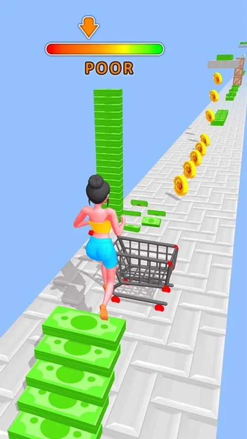 You go from poor to being rich by running and collecting money. It is money multiplier game.