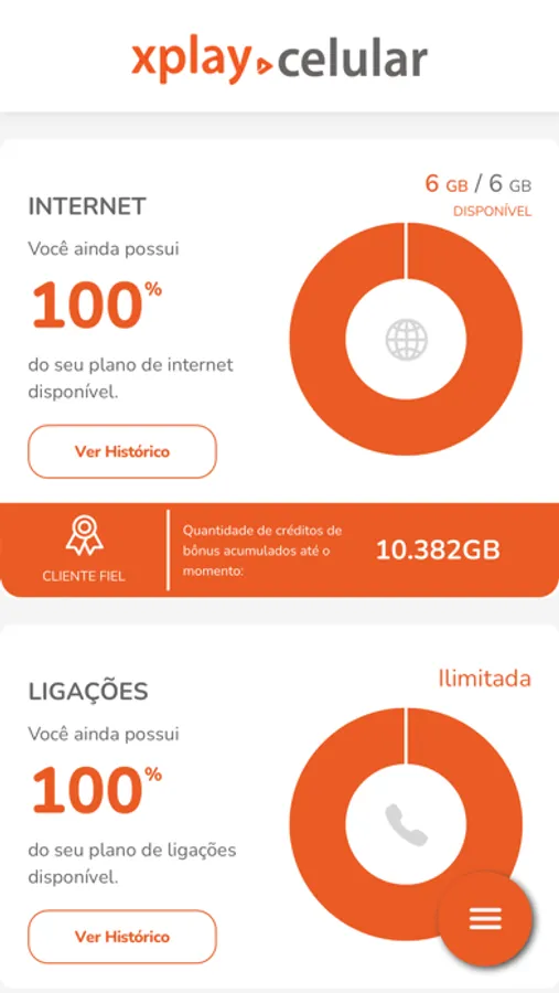 Com o aplicativo da XPlay.digital você pode acompanhar quanto você ainda possui de internet, ligações e SMS para utilizar do seu plano XPlay Celular. Além disso, é possível também acessar o Visao360, plataforma inovadora de visualização de câmeras ao vivo de várias cidades ao redor do Brasil.