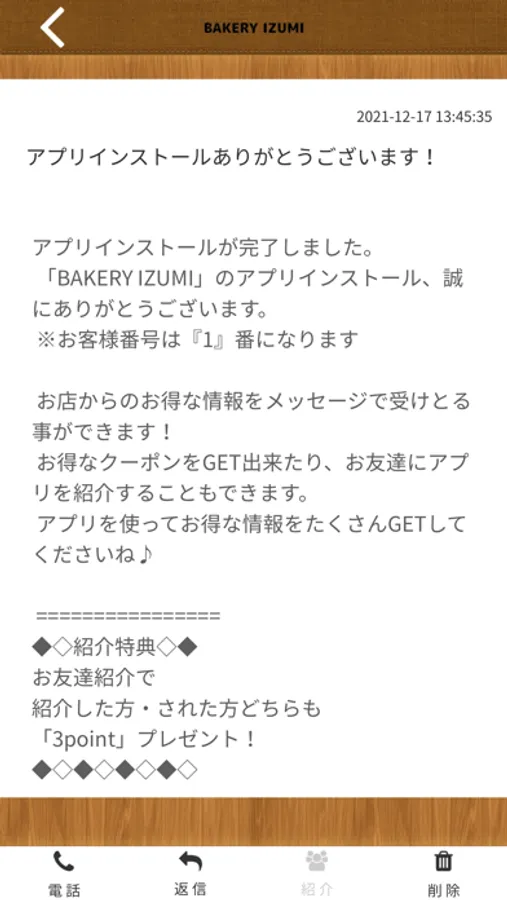 BAKERY IZUMIのアプリをSNSを通じてお友達に紹介する事ができます。