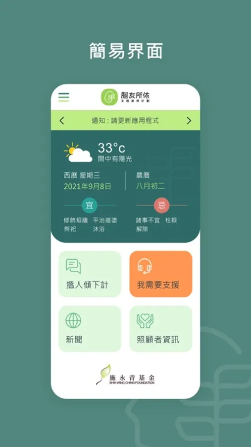 腦友所依支援服務計劃是一項專為認知障礙患者及其家庭照顧者而設的先導計劃。此手機應用程式採用無障礙的理念開發,一經登記及確認身份的會員,可透過應用程式連繫在線的義工或職員,使用實時、視像的情緒支援及危機介入服務。另外,為回應照顧歷程上不同階段的照顧需要,計劃可按需要為服務家庭安排使用資助的家居或中心為本的認知訓練、個人護理或暫託服務。
