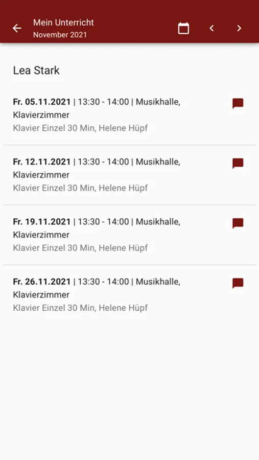 Alle Funktionen zum Austausch von Nachrichten zwischen Lehrkräften, Eltern, Schülern und der Musik Akademie setzen keinerlei Kontaktinformationen voraus. Die Übermittlung von Nachrichten erfolgt über eine App-interne ID. Zum Chat und Nachrichtenaustausch sind keine E-Mail-Adressen oder Handynummern erforderlich!