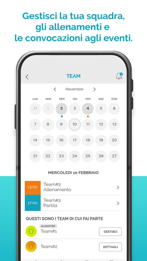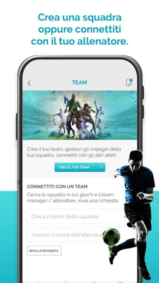 - Crea la tua squadra o collegati con il tuo allenatore per rimanere aggiornato sugli appuntamento del tuo team