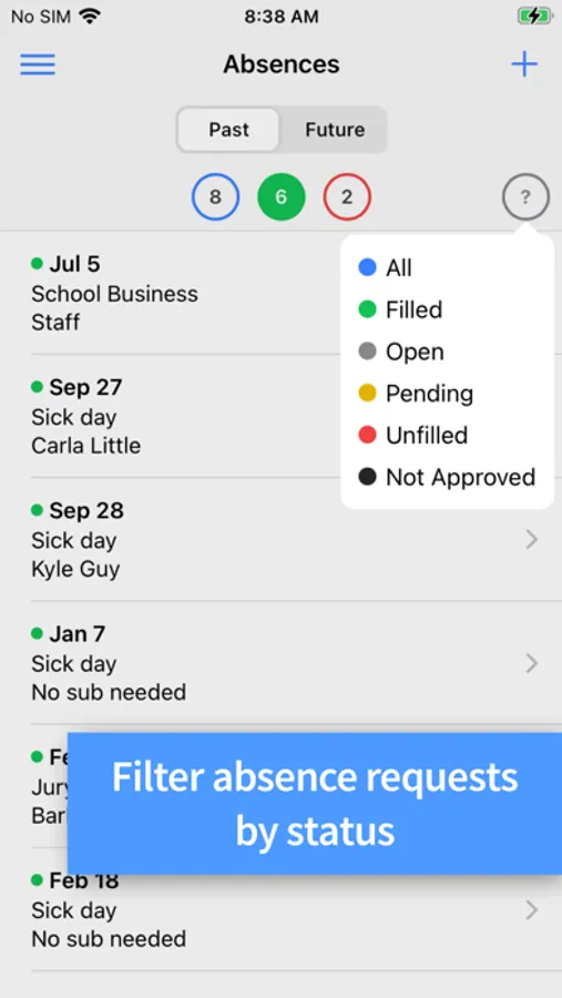 • View their past and future absences.
