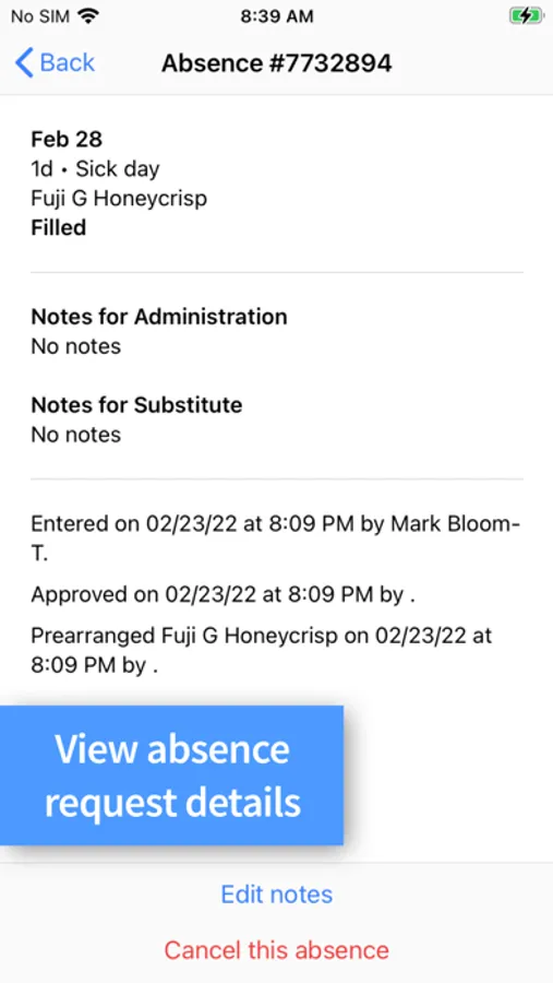 • View details for a specific absence.