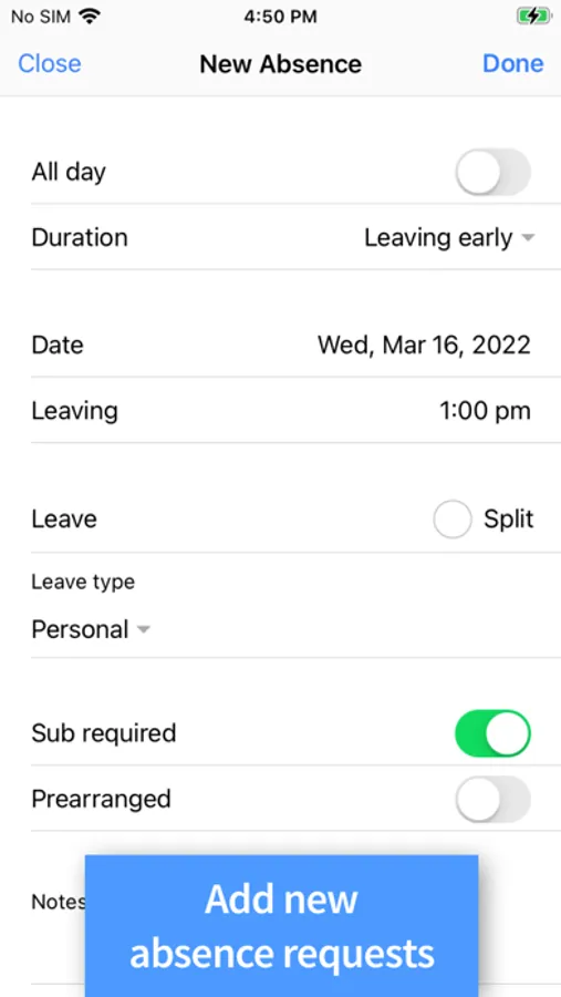 • Create new absence.