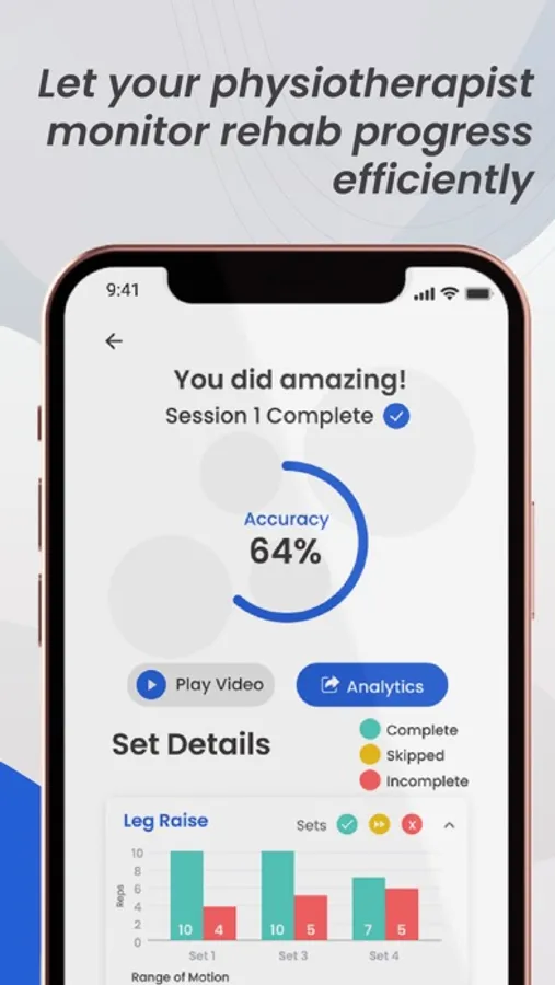 ∙ Regular Monitoring - Allycare monitors your performance throughout the rehab session and suggests improvements