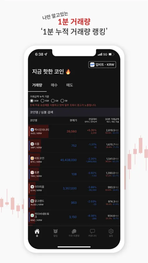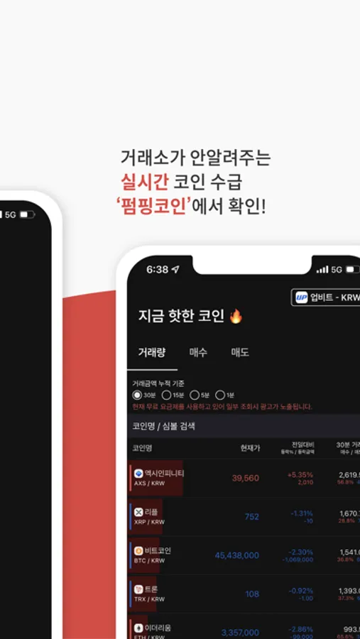 - 거래소에서 알려주지 않는 실시간 코인 수급을 확인할 수 있습니다