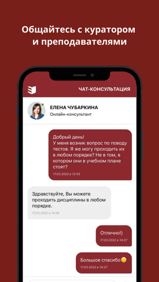 Каждого студента ведет личный куратор. К нему можно обратиться за консультацией по поводу обучения: задать вопрос в чате или позвонить напрямую. Преподаватели также проконсультируют вас по теме изучаемой дисциплины.