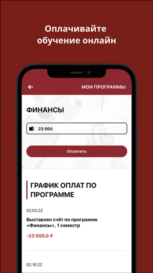 В учебном плане есть раздел оплаты и график индивидуальных платежей. Благодаря этому графику образовательный портал автоматически напоминает о платежах. Укажите сумму, которую хотите внести, и реквизиты карты — дело 10-ти секунд.
