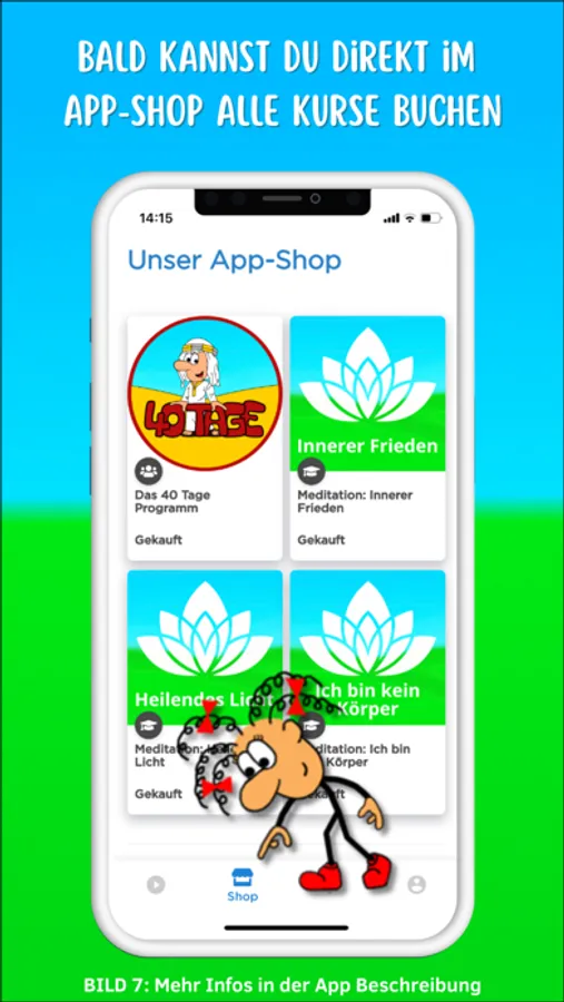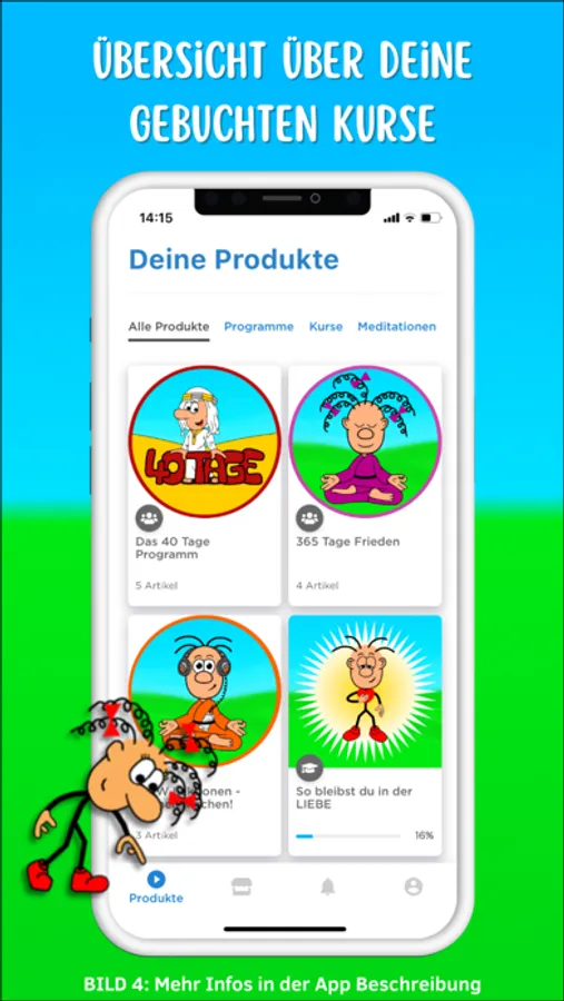 Unsere Online-Kurse sind sehr abwechslungsreich, mit viel Liebe und Humor gestaltet. Mimi’s Cartoons werden dir ein Lächeln ins Gesicht zaubern und kräftige Bilder in deinem Unterbewusstsein verankern.