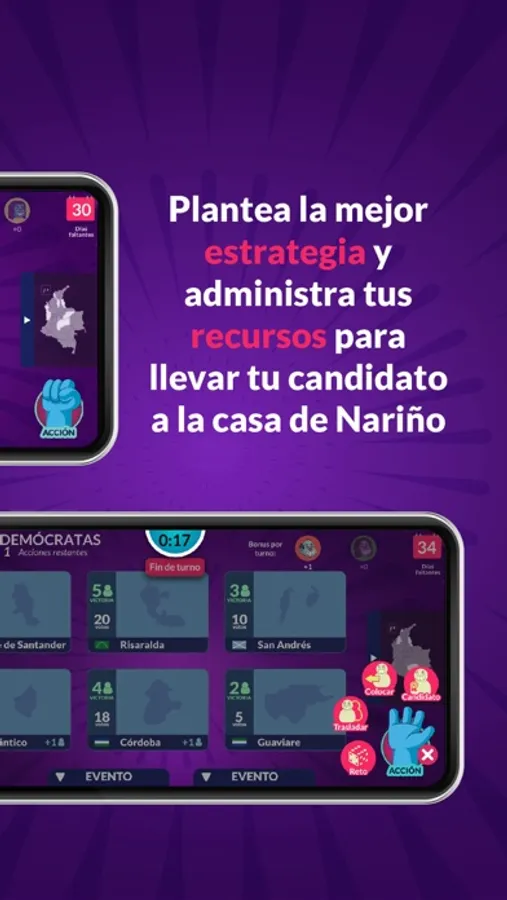 Colombia es un país lleno de contrastes. Su historia, diversidad y geografía la convierten en un país en donde el “realismo mágico” es una cotidianidad y cualquier cosa puede pasar. Algo de lo que no se escapa su sistema electoral, cargado de ritos y hechos insólitos, lo vuelven el contexto perfecto para aprender sobre las elecciones presidenciales divirtiéndose planteando estrategias o reaccionando a los planes rivales, dentro de una fiesta comparada a las diferentes celebraciones y carnavales que celebran los colombianos.