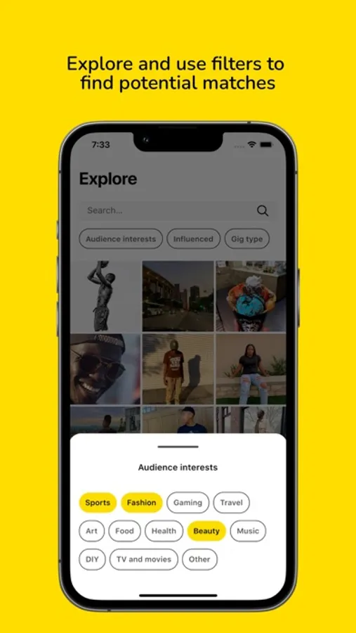 - Use the explore page to filter and search for people who match your brand, style or payment requirements