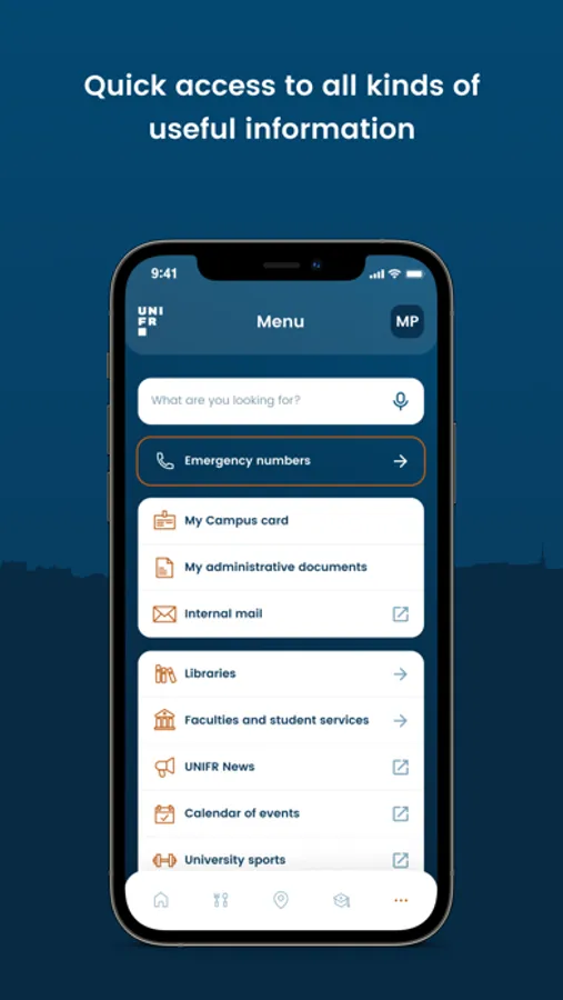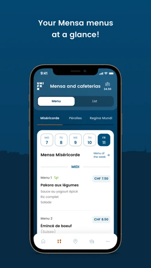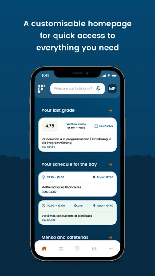 UNIFR Mobile is the official app of the University of Fribourg. Whether you are a student, a staff member or just passing through, this app gives you easy access to the main services offered by the University.