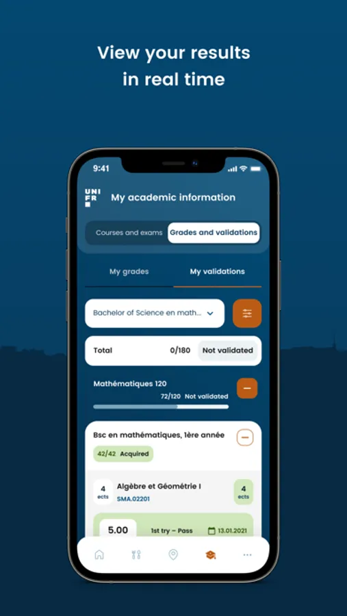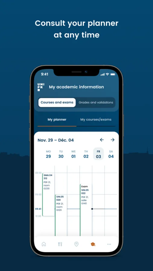 Access your personal timetable, course and exam registrations, grades and validations at any time.
