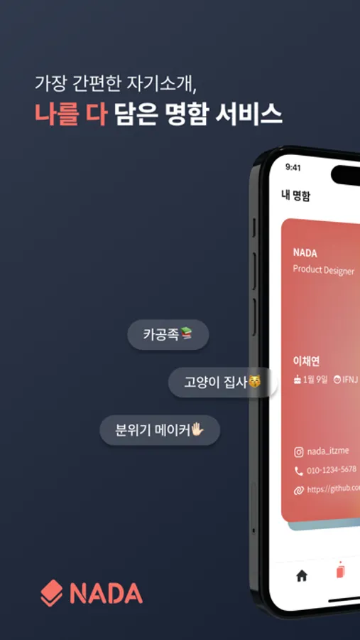- 앞면에는 이름, 생일 등 기본적인 정보를, 뒷면에는 더 다채로운 정보를 담을 수 있어요.