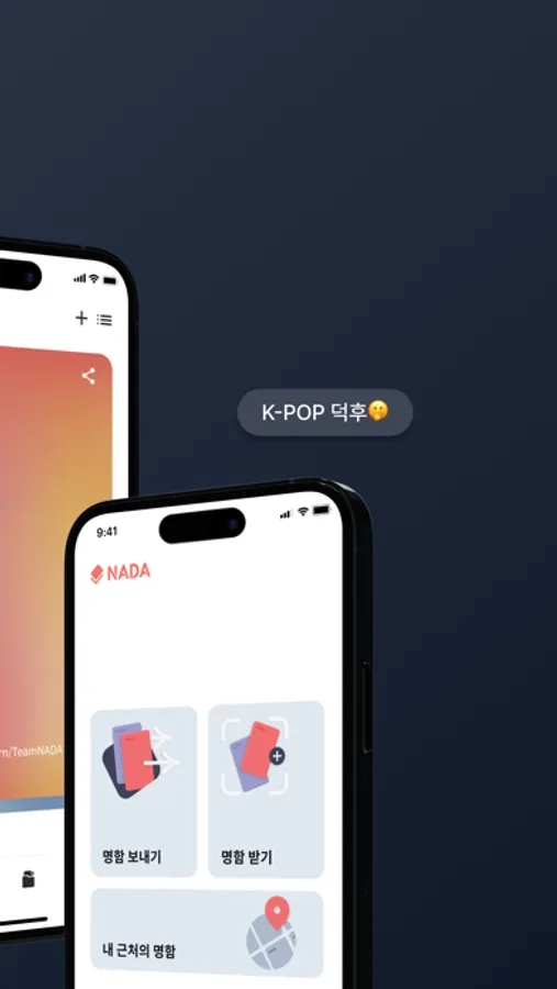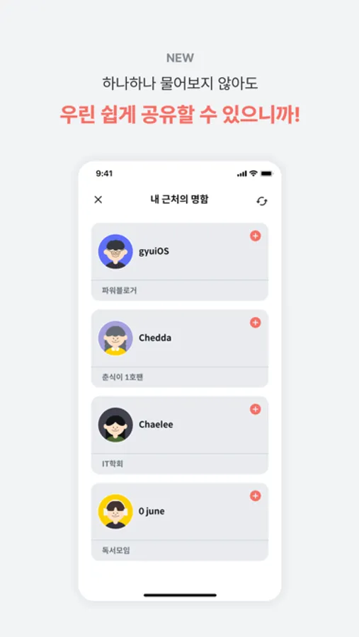 - 내 근처 1KM 이내의 명함을 쉽게 추가할 수 있어요.