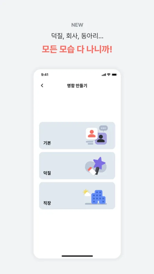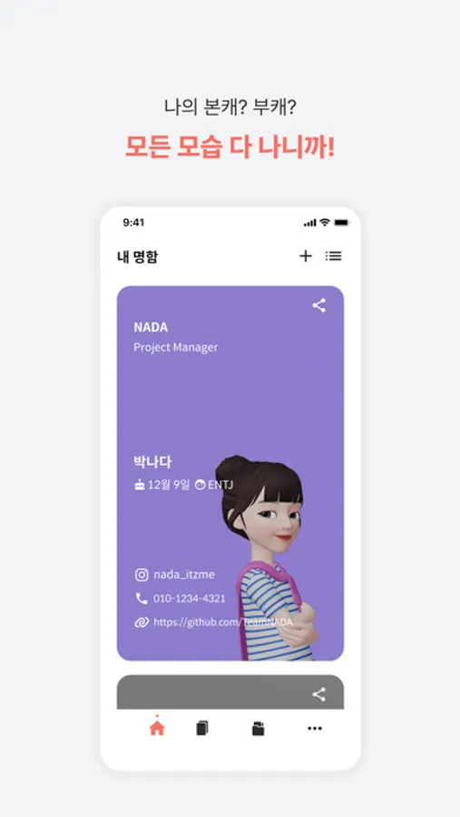 - 내 속엔 내가 너무나 많아! 직장/덕질/기본 명함으로 다양한 나를 모두 담아보세요.