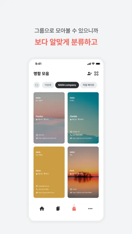 - 받은 명함은 그룹별로 분류해서 관리해 보세요.