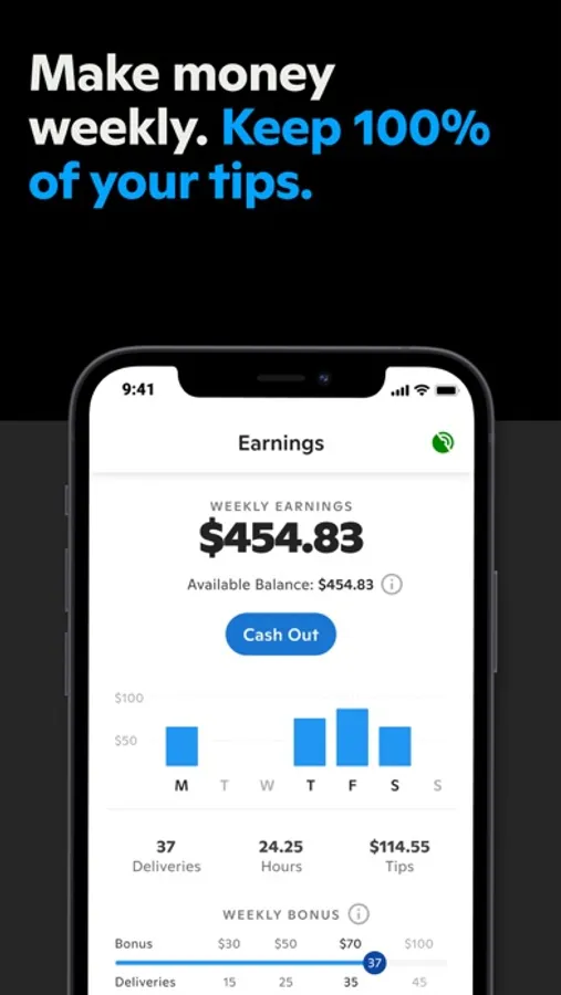 - Earn flexibly and get paid weekly