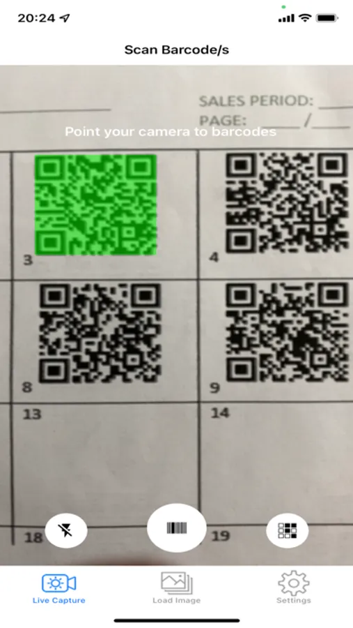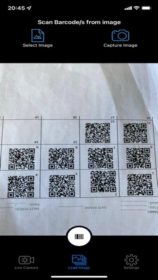 Scan in Load image mode - Scan barcodes from a stored image or by capturing image