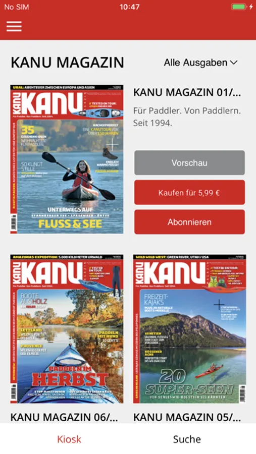 Seit über 20 Jahren ist KANU das Leitmedium der deutschsprachigen Paddelszene. Das Magazin deckt alle Facetten des Paddelsports ab: naturnahe Kanutrips für Genießer und Familien, Wildwasser vom Einsteiger-Level bis zur extremen Expedition, Seekajaktouren entlang der Küste ... und vieles mehr.