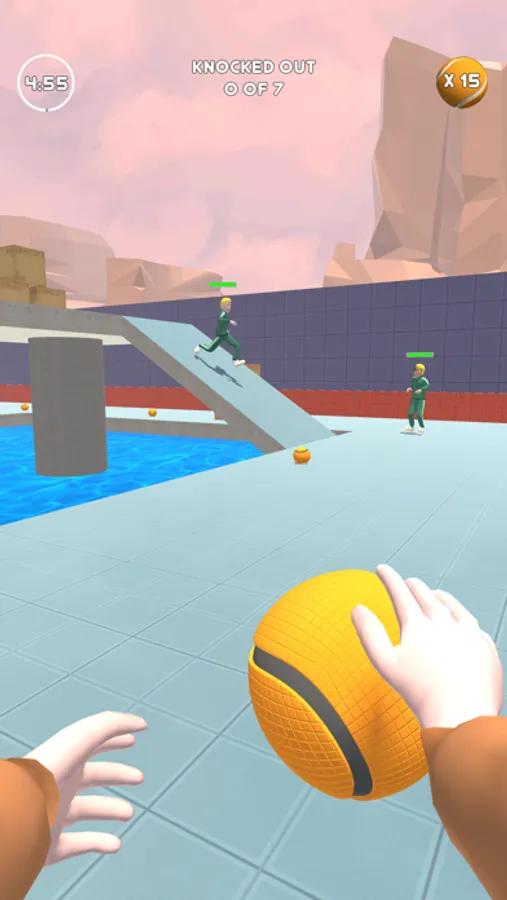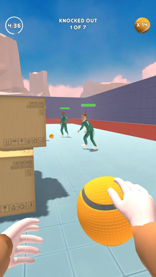 You have to knock out all your opponents throwing the balls. You are the hunter. Your opponents will try to escape. You have balls’ limit and time limit to win the maps. If you knock down all opponents, you won. If they escape you lose.